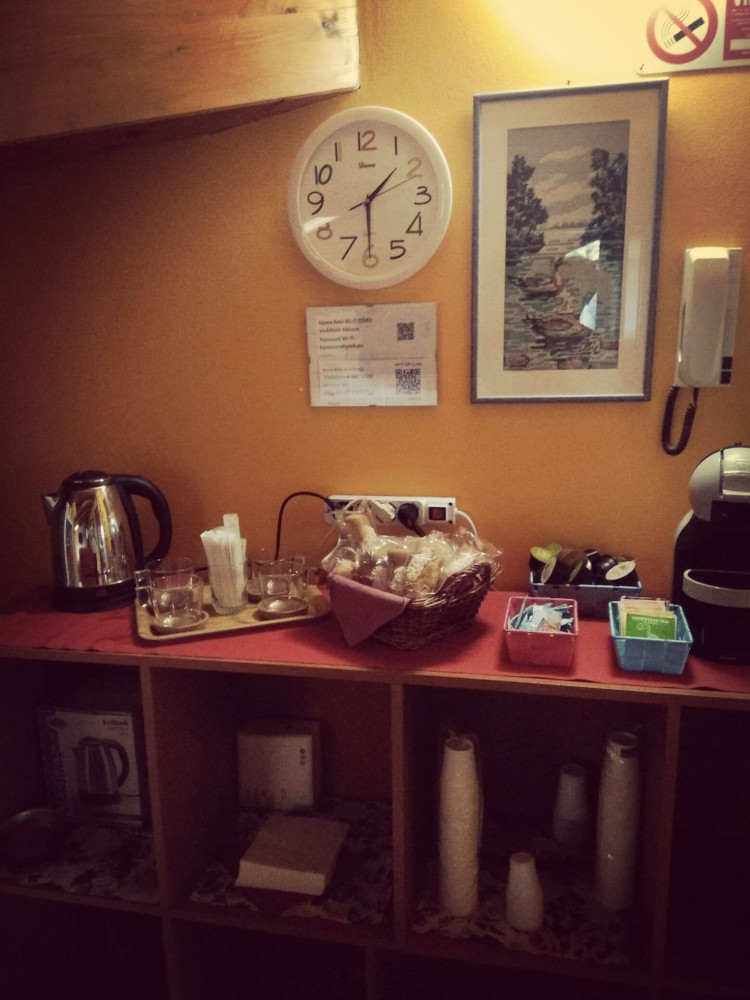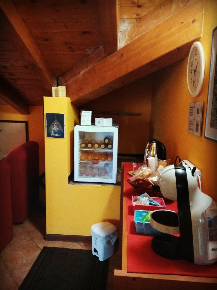There is a large dedicated bathroom and a nice sitting room with LCD TV, coffee machine, tea, croissant for a small free breakfast in the morning, and a mini-bar.