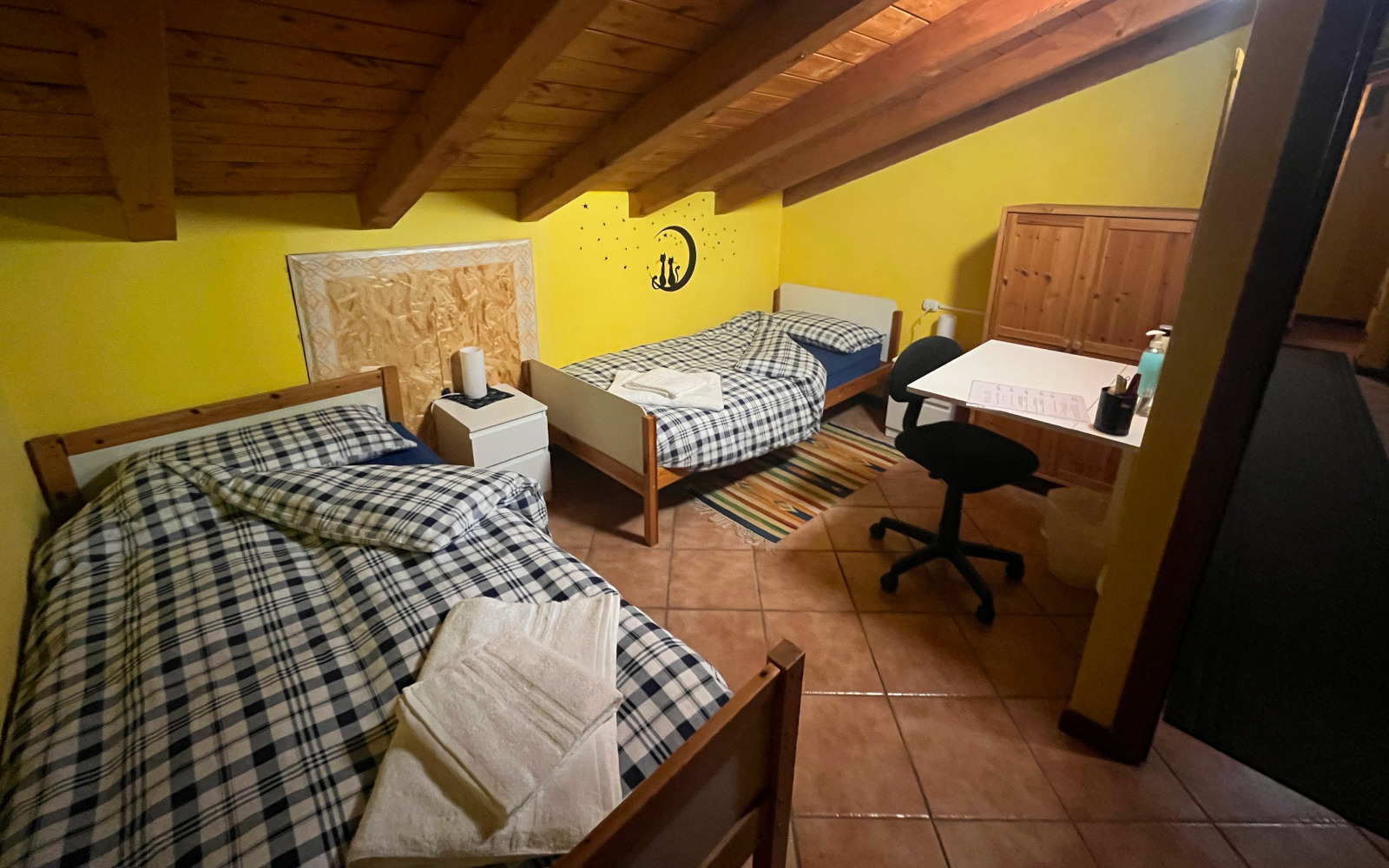 You can choose between a large bedroom with a king-size bed, a bedroom with two single beds, a bedroom with a queen size bed.